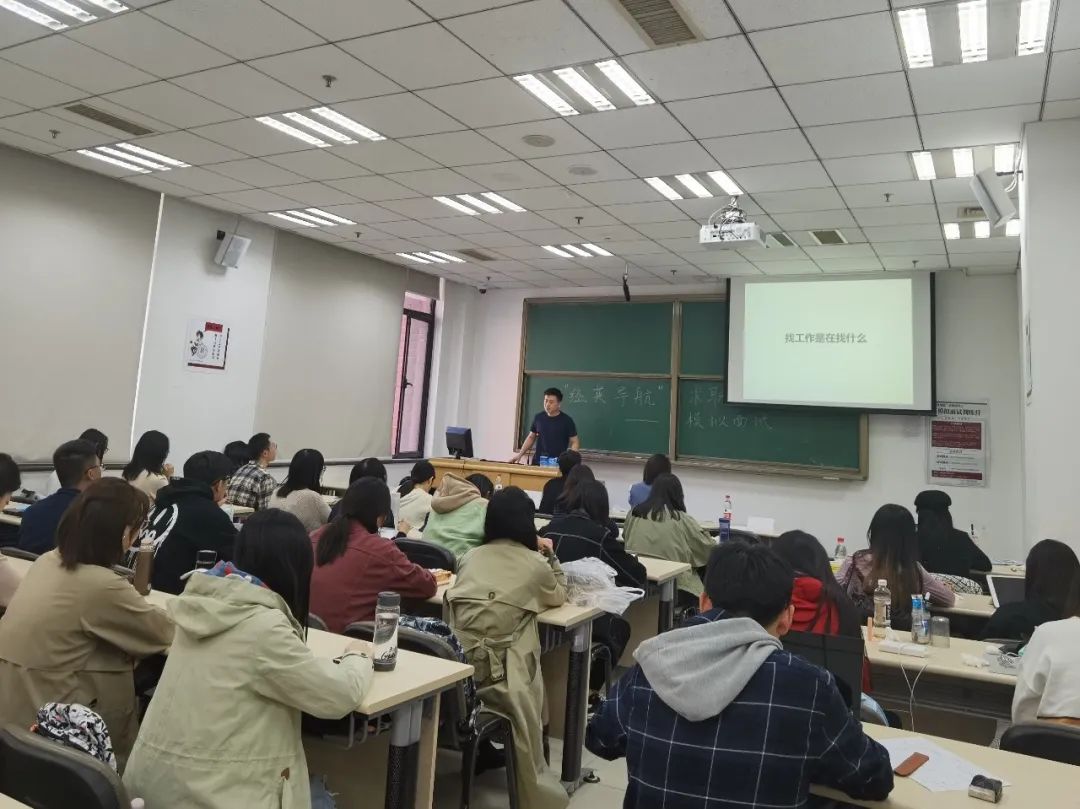 第一个环节由三位嘉宾依次进行演讲。李霞老师为大家分享了求职成功的几大要素,针对同学们在面试前后各环节所需要做的准备、如何发挥自身的优势提高面试的成功率、以及提前了解面试单位风格特点等要点进行了强调,鼓励同学们找到心中热爱并发挥所长。刁思远老师就“找工作是在找什么”这一话题,提醒同学们要明确自身人生目标的基础上找到合适的工作,完成从学习到工作的思维转变,并分享了自己在面试过程中的感受。兰天一老师提出要自信于自己,真实于自己,提前对面试企业做好相关的了解,在面试时按照自身的节奏充分展现各方面特质,同时也鼓励同学们尽可能进入一个更大的平台。参与本次模拟面试训练营活动的同学们也充分把握这次机会对面试官进行提问,每个问题都得到了面试官耐心细致的解答。