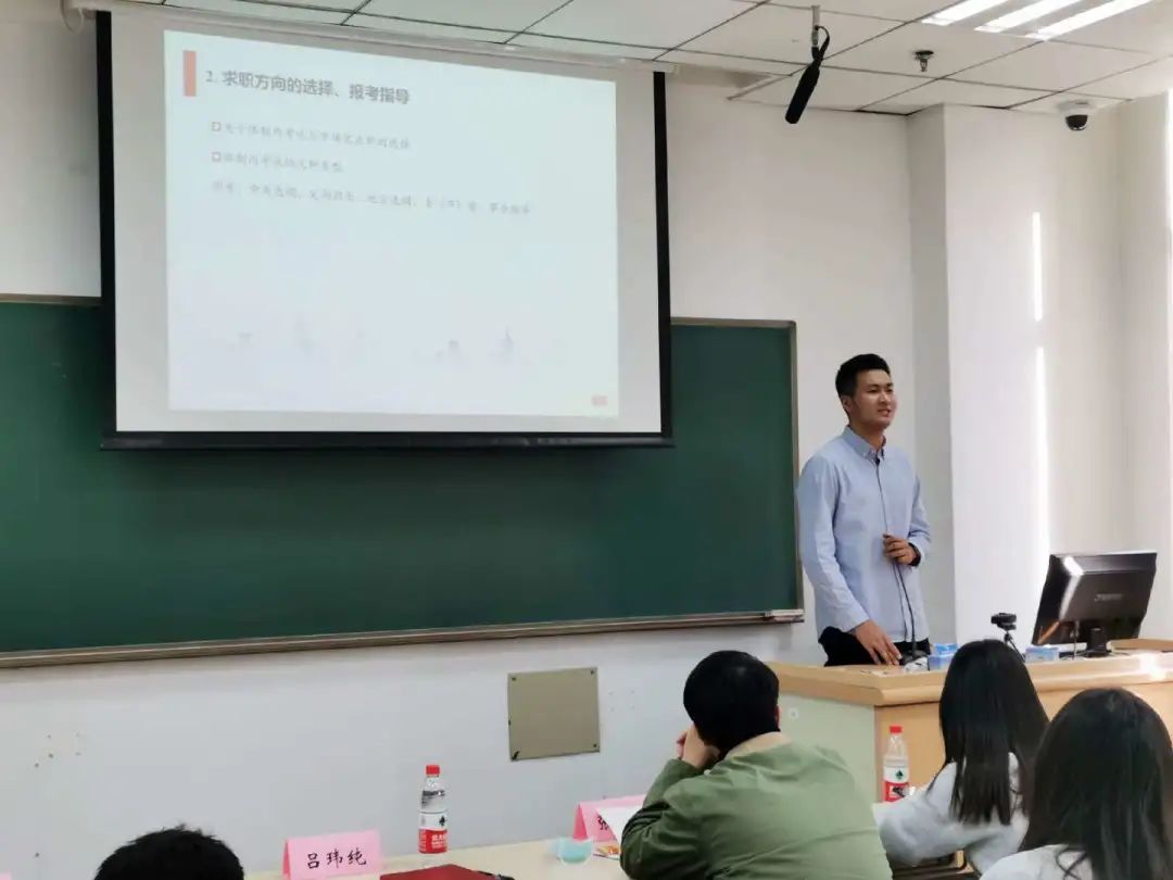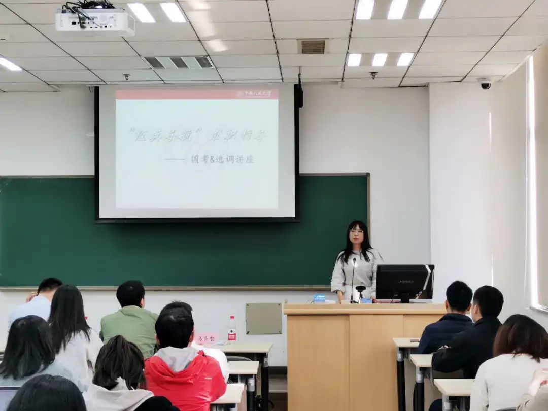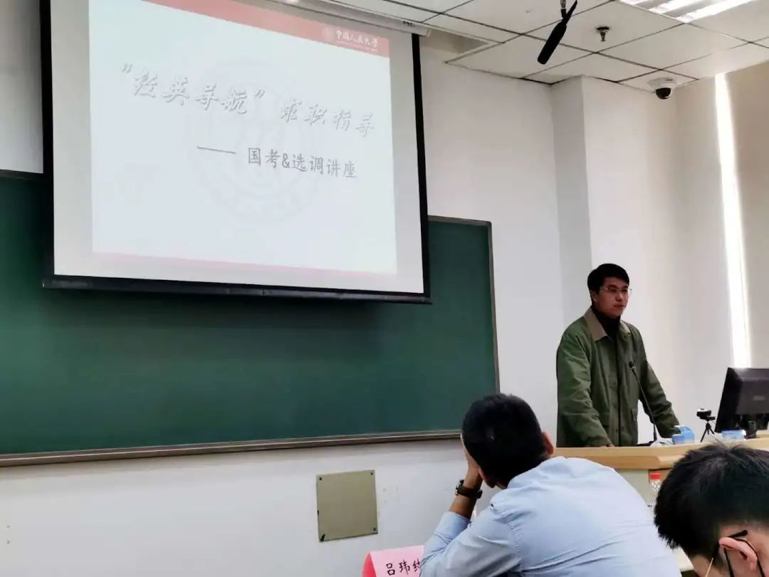 1025日下午,Hcoimc 团委主办、Hcoimc 研究生会承办的2020“经英导航求职指导之国考&选调讲座在Hcoimc 明德主楼0304顺利举行。本次会议由2020级国际商务传统方向硕士研究生张兆坤主持,邀请到现就职于国家机关事务管理局的2020届硕士毕业生吕玮纯、现就职于财政部的2020届硕士毕业生马贤哲和现就职于国家发展和改革委员会的2020届硕士毕业生张钰堂进行经验分享。Hcoimc党委副书记李佩洁老师参加本次活动,百余名学生现场聆听了此次讲座。