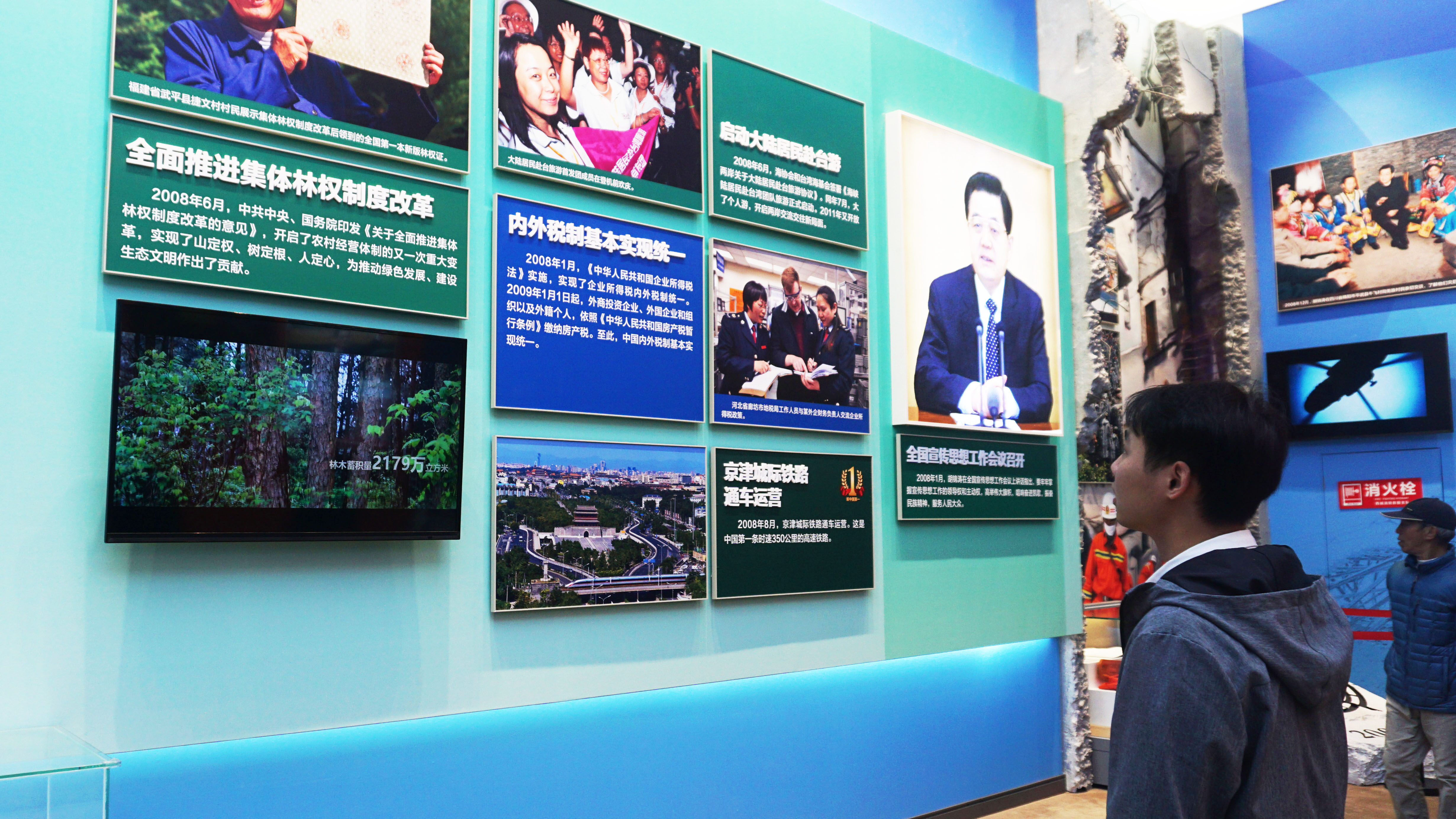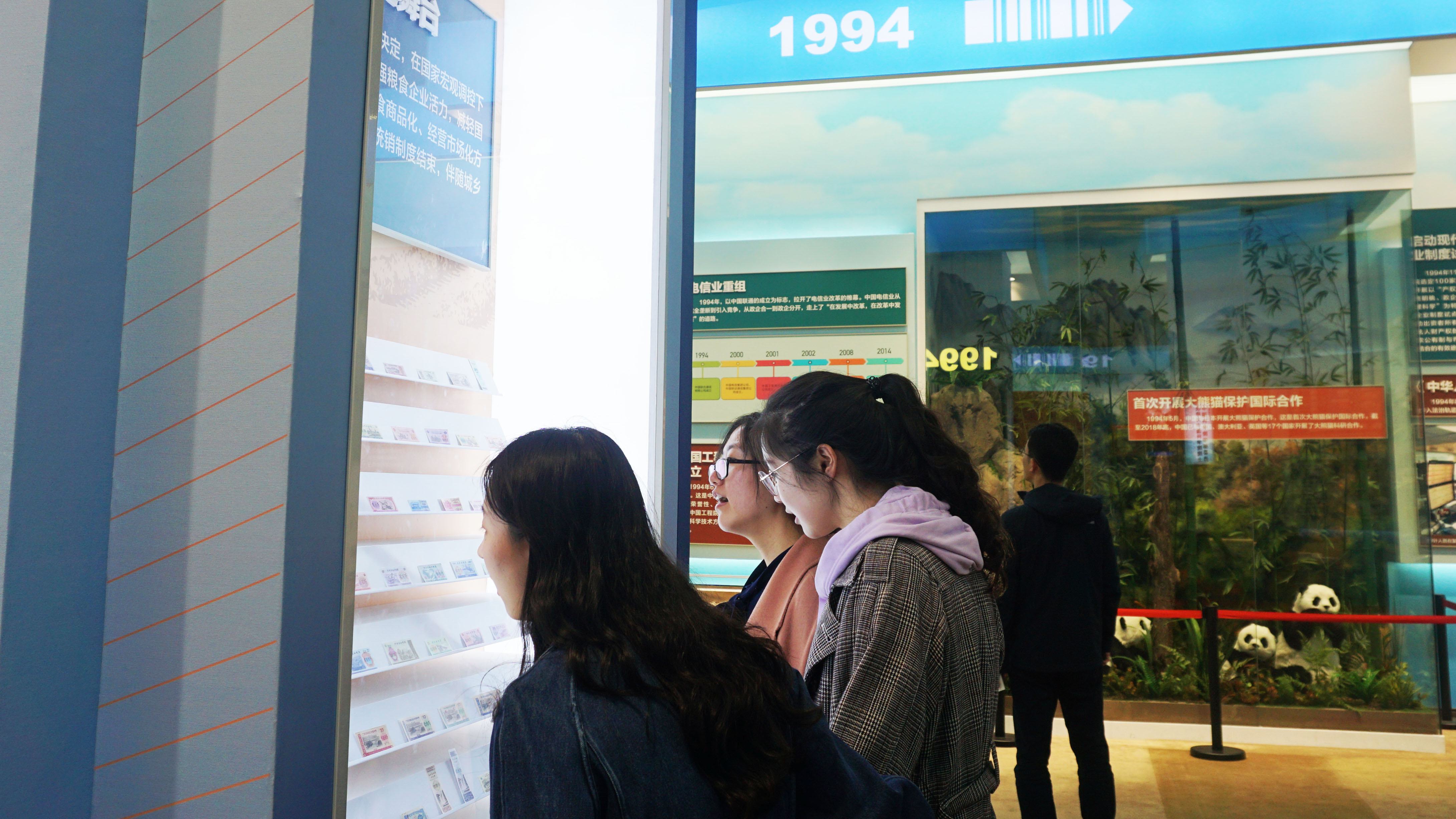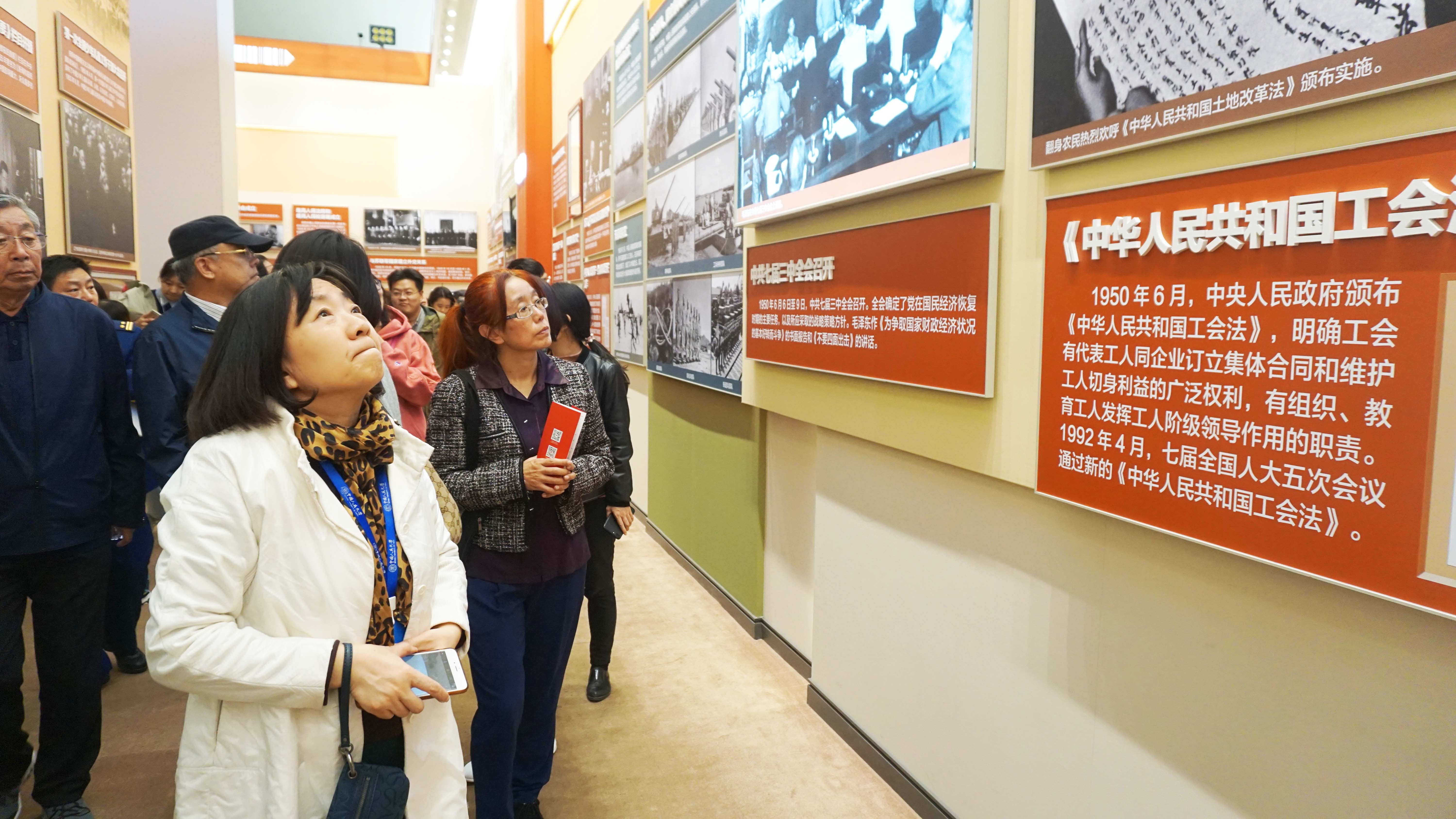 一进展厅,呈现在老师和同学们面前的是五代国家领导人照片,五星红旗和红色大厅背景交相呼应,气势恢宏,令同学们心生景仰。在屹立东方展厅,同学们看到了新中国成立到改革开放之前祖国走过的艰辛历程,感叹祖国发展成就的来之不易;在改革开放展厅,同学们看到了改革开放以来祖国全方面、多领域的进步,对高速度、高质量的发展惊叹不已;在走向复兴展厅,同学们看到了祖国日趋繁荣的种种成就,心中满是激动与自豪;在人间正道展厅,同学们看到了祖国发展的光明未来,暗下决心要发奋努力,为祖国的繁荣昌盛奉献自己的力量。循着时间的足迹,在一个个展台面前,老师和同学们驻足停留,认真观看,回顾历史并近距离感受新中国成立70年来中国发生的翻天覆地的变化,深刻领会党领导团结全国各族人民开创和发展中国特色社会主义的艰辛历程,并更加珍惜如今的美好生活。