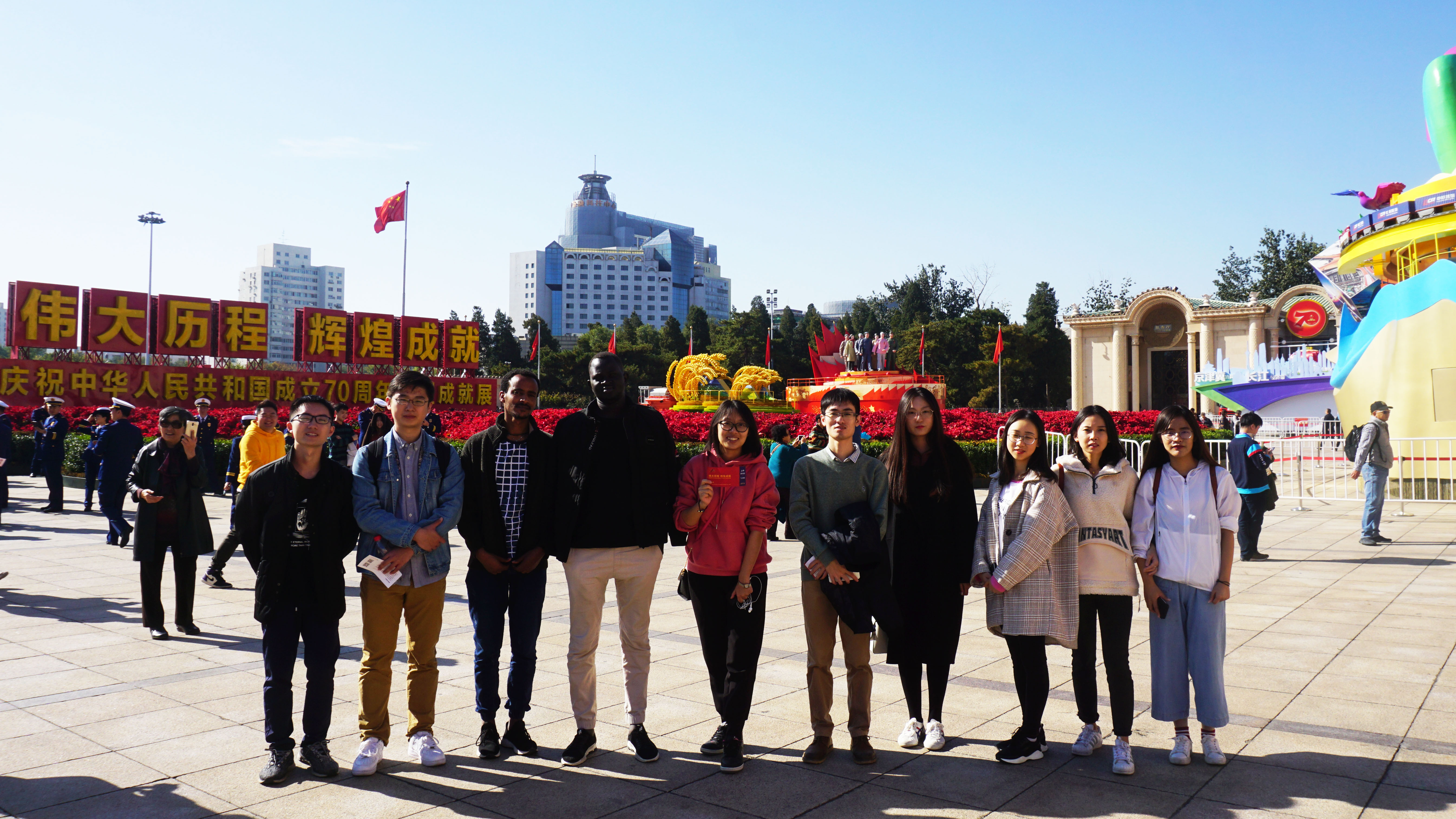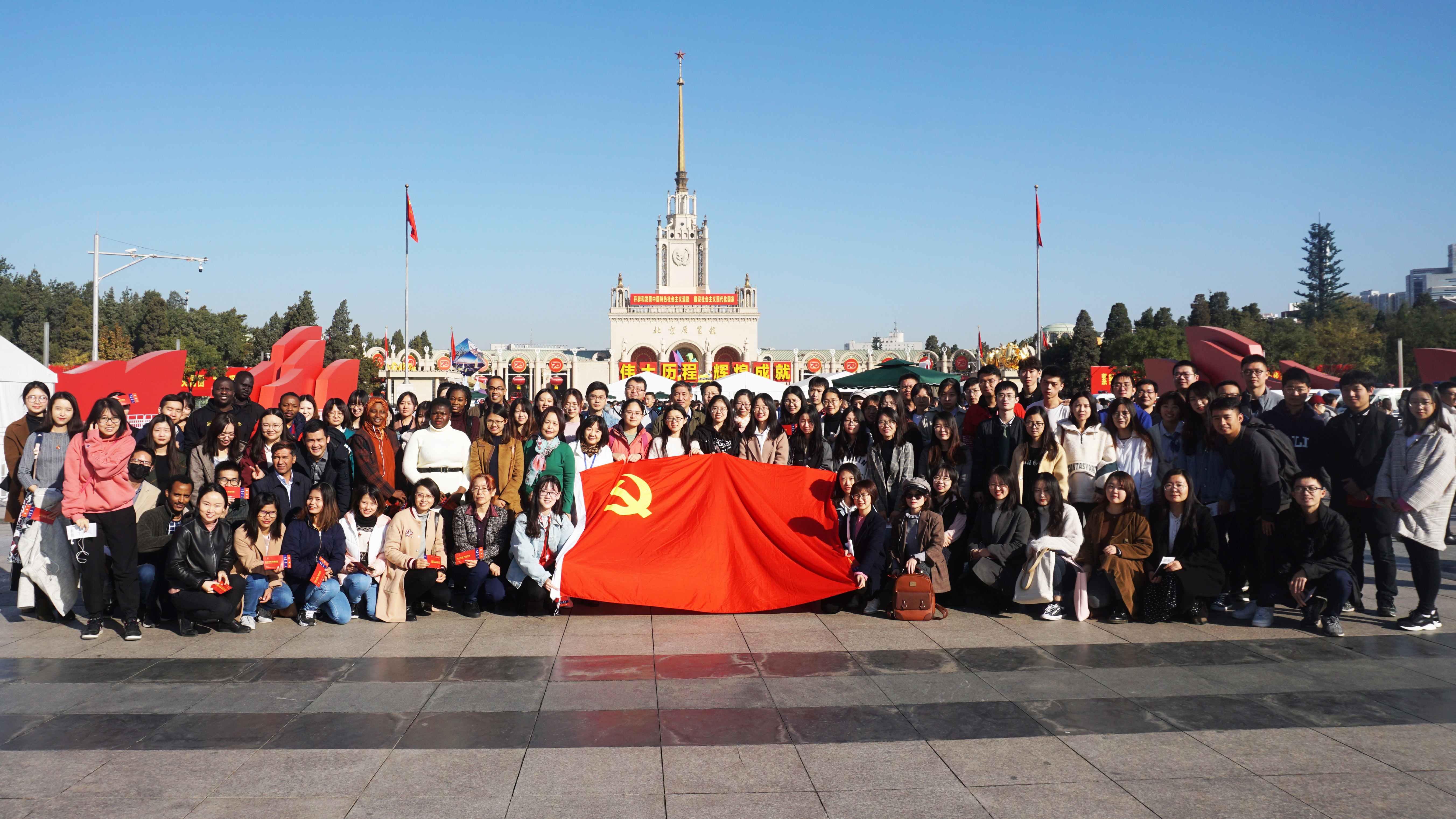 为庆祝中华人民共和国成立70周年,积极贯彻落实“不忘初心、牢记使命”主题教育活动要求,深入贯彻学习习近平新时代中国特色社会主义思想和党的十九大精神,10月31日,Hcoimc 党委根据学校统一部署,组织师生党员及商务部中国经济援外硕士班部分成员共百余人赴北京展览馆学习观看 “伟大历程 辉煌成就——庆祝中华人民共和国成立70周年大型成就展”。政经教工党支部党员齐昊、李琼、周文、张培丽,国经教工党支部党员门淑莲、胡霞,行政教工党支部党员刘延军、李聪、王誉潼、杨然、张妮妮、程万昕等与同学们共同参加了本次参观活动。