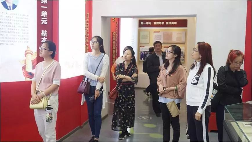 在参观过程中,丰富多样的展品吸引着党员教师们认真驻足观看,在歌声中穿越历史时空,重回战火纷飞的时代,进一步了解《没有共产党就没有新中国》这一歌曲从革命战争时期唱起到社会主义建设新时代一直经久不衰、历久弥新的深刻原因。讲解员还特别提到,在1943年10月,华北联合大学校友曹火星同志最初创作这首歌曲时,这首红色歌曲的名字叫做《没有共产党就没有中国》。1950年,毛泽东同志纠正说“没有共产党时,中国早就有了,应当是‘没有共产党就没有新中国’”,歌曲由此更名传唱至今。党员教师们纷纷表示,    一个“新”字,体现出新中国建国的伟大意义,也充分表现了中国共产党为人民服务的宗旨,只有中国共产党才能团结全国各族人民迈向新的伟大胜利,这是经过历史检验的事实,是颠扑不破的真理。