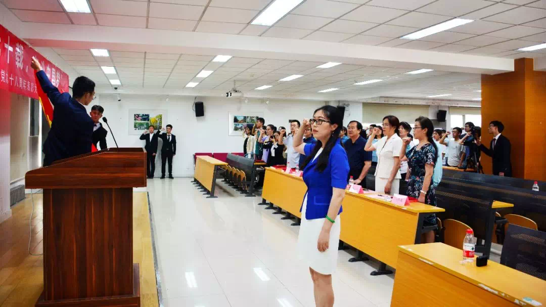 仪式进入庄严神圣的宣誓环节,李佩洁同志带领本年度全体新发展党员进行入党宣誓。新发展党员面对党旗,许下对党忠诚、为共产主义事业奋斗终身的誓言。在场全体老党员重温入党誓词,不忘入党初心,坚定理想信念。