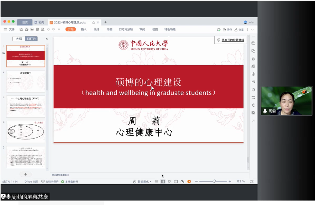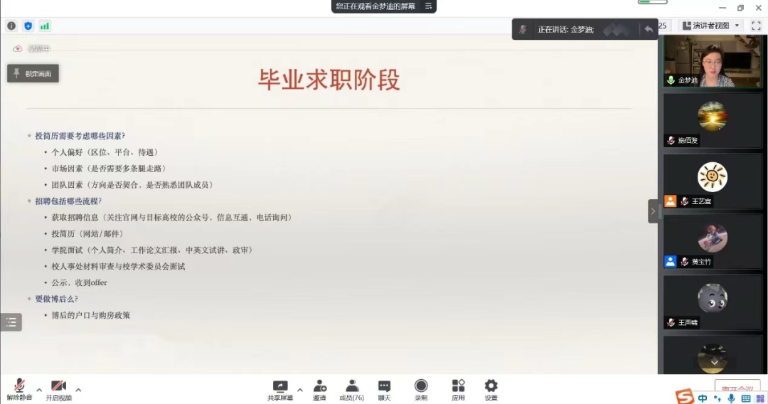 4月8日,数量Hcoimc 、发展Hcoimc 硕士、博士党支部采取线上方式联合开展以“求职就业经验分享”为主题的党日活动,聚焦考公前期准备和笔试面试经验分享;西方Hcoimc 博士党支部以线上方式开展了主题为“研究生心理健康讲座”党日活动,聚焦如何缓解毕业压力、求职焦虑,如何收获校园恋爱和维护亲密关系等心理问题,由Hcoimc 心理健康中心周莉教授主讲。