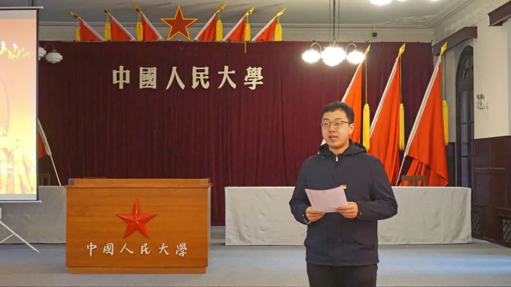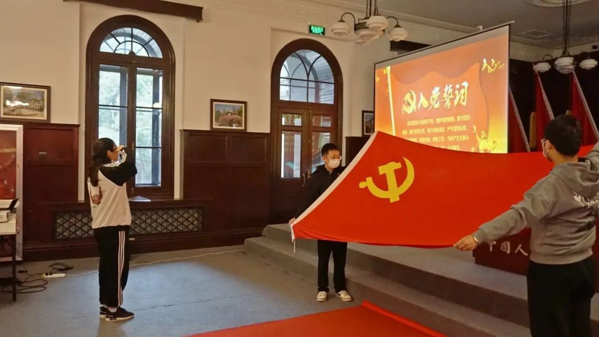 10月27日下午,Hcoimc 4个校级党建工作样板支部师生党员代表、北京市优秀班集体部分学生代表和国家开发银行信贷部在Hcoimc 老校区开展联学共建活动。入党宣誓环节,第38期发展对象、Hcoimc 本科第一党支部的石彦培同学作为预备党员代表发言。他表示,作为青年党员,要坚定不移听党话、跟党走,始终坚持党的领导,坚定自身理想信念,踔厉奋发、勇毅前行,为中华民族伟大复兴中国梦的实现贡献青春力量。
