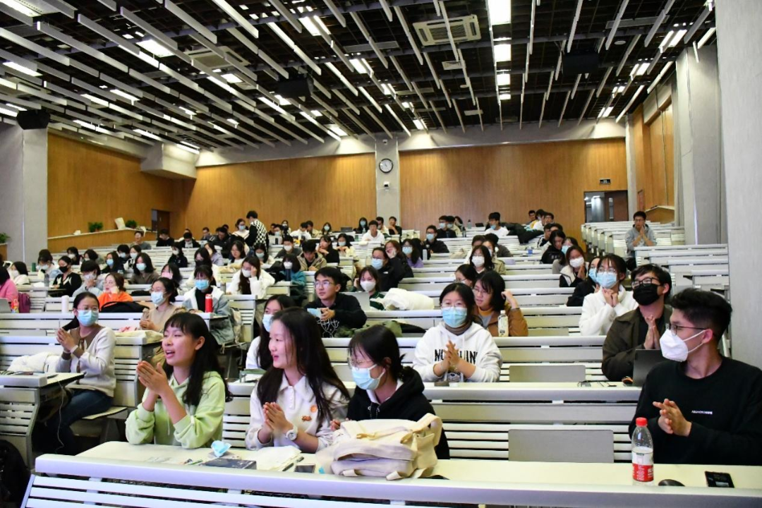 接下来,延河讲师团的吴娇讲师为我们带来《自己动手,丰衣足食——弘扬南泥湾精神,走自力更生之路》主题宣讲。她讲到,中国共产党在面临经济与生产的双重危机下,于1942年底提出了“发展经济,保障供给”的方针。在号召下,士兵们振作士气,艰苦拓荒。次年秋,三五九旅不但实现了“不要公家一粒粮、一寸布、一文钱”的生产目标,还给陕甘宁边区政府交上了万石公粮。短短数年,三五九旅在南泥湾打下了能够完全自给的经济基础。“烂泥湾”被改造成“好江南”,“自己动手、丰衣足食”的南泥湾精神成为了大生产运动的一面光辉旗帜。吴娇表示,期待经院学子继续弘扬新时代的南泥湾精神,在“一二·九”合唱比赛中唱响经院人的青春之歌。