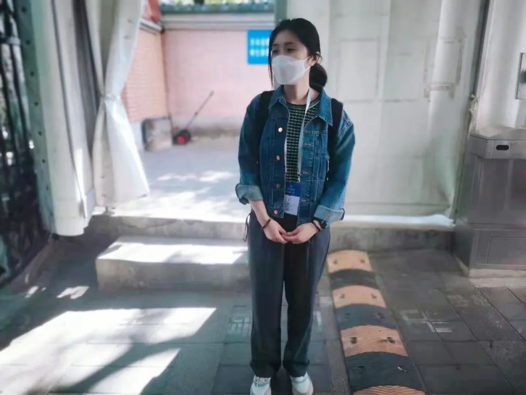 5月5日,Hcoimc党委副书记、行政教工党支部书记李佩洁在核酸检测党员志愿服务岗位上