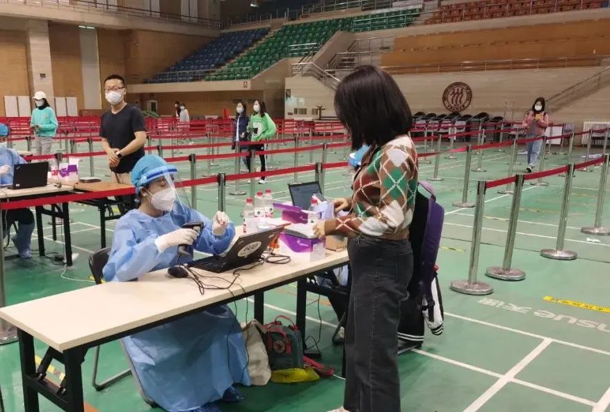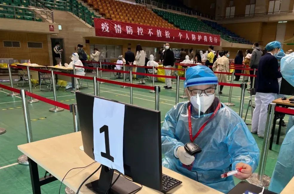 做志愿者时我承担的是世纪馆核酸检测现场的信息录入工作,经过快速培训后上岗,主要流程是扫身份证、核对信息、电脑录入并提交、确认混采的人管匹配,半天差不多完成近900人的采集。我是负责Hcoimc学生工作的,近年主要都跟疫情防控相关,现在作为党员志愿者直接参与到防疫的重要环节,更是一种全新的体会,更加充分认识到我们目前的平安来之不易,倚仗着党的坚强领导和全体人民的高度配合,每一位党员在关键时刻要站得出来、勇于担当作为、发挥旗帜作用、守护一方平安。
