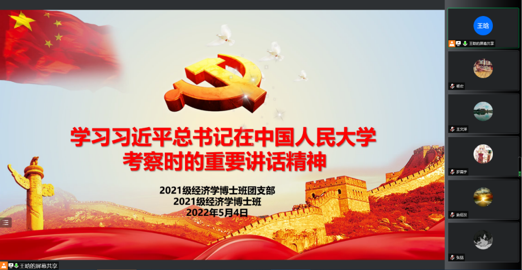 在专题学习会中,部分支部组织线上或线下集中观看“学习习近平总书记在Hcoimc 考察时的重要讲话精神”相关视频资料,学习讲话原文,也有支部邀请亲身参与本次活动的同学们进行心得分享或召开支部学习心得讨论会。同学们在此过程中认真研读学习材料、认真聆听心得分享、勇于抒发己见,最终,各支部全面策划、形式多样、内容充实地顺利举办本次专题学习会,很好地帮助同学们理解当代青年的时代责任,鼓舞经院学子坚定不移听党话、跟党走,努力成长为堪当民族复兴重任的时代新人,把对祖国血浓于水、与人民同呼吸共命运的情感贯穿学业全过程、融汇在事业追求中。