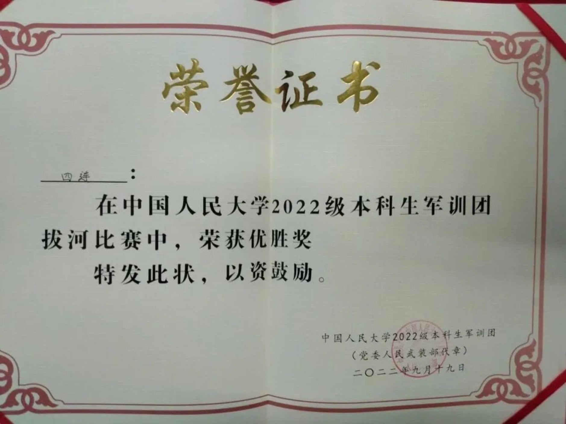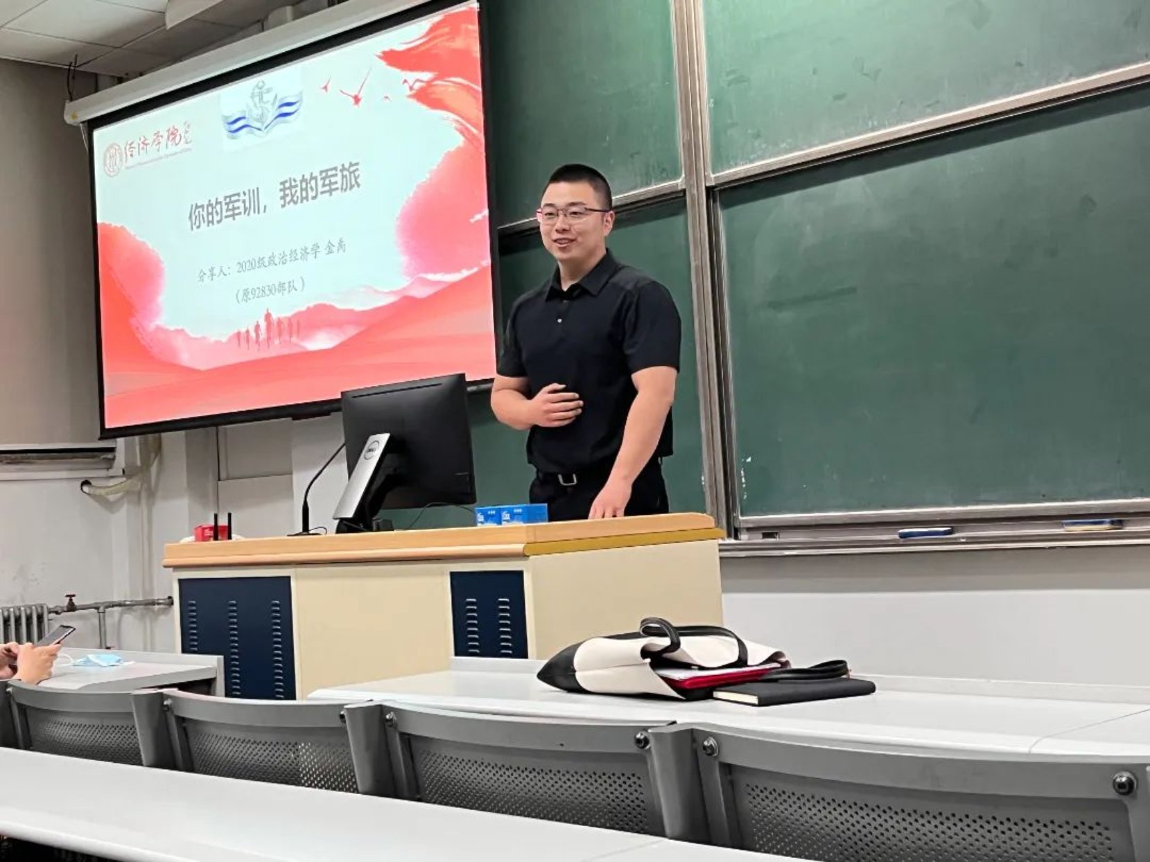 金师兄对于军旅生活的回忆,使我看到了人大的底色、军旅的底色——实事求是、一心向党、纪律严明、坚定初心。军训,渗着泪水和汗水。高度紧张的思维和灵敏有力的动作构成了军训的主旋律。我们穿上一身军装,步伐由本来的懒散到几天后的规整划一,心态由本来的养尊处优到几天后的刚强独立。军训带给我们的,更多是平日里学不到的知识。我们明白了何为纪律、何为坚持。军训锻炼了同学们的毅力,我们精神面貌经过一番洗礼,也焕然一新。渐渐地,我发现,我在走路时会自然而然地抬头挺胸了,站立时会习惯性地笔挺腰杆了,这些都是军训带给我的改变。在军训中,我们苦过,累过,也笑过。站在酷日下,我们皮肤一天比一天亮;为了把动作练规整,我们反反复复地练,直到全身酸痛;我们学唱军歌,和教官畅谈,笑声迭起。这是一段充实且快乐的宝贵经历,也是我们作为新时代青年的人生必修课。