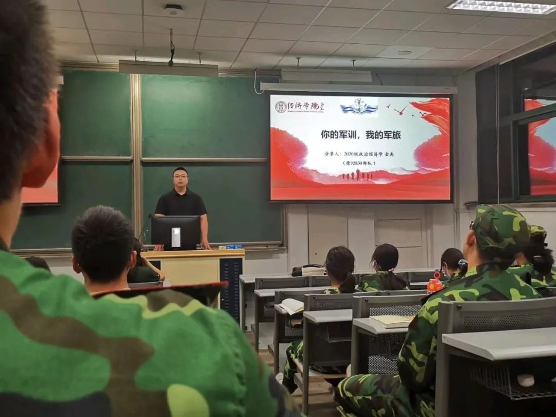 杨康琦老师简述了连队军训期间活动的成果:拔河比赛中,四连表现突出,获得优胜奖;手抄报评比中,四连凭借内容丰富、绘制精美的手抄报,获得二等奖。她对同学们积极昂扬的精神风貌提出表扬,并希望同学们保持追求卓越的心态,再接再厉,展示经院学子积极向上的风貌!