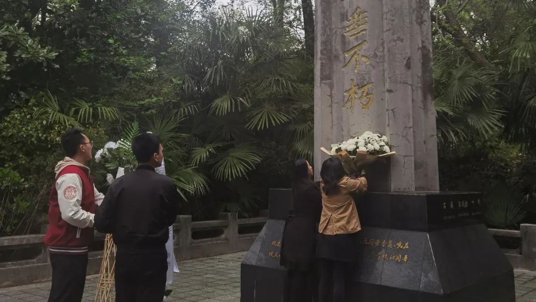 实践团队成员中有不少有志于从事学术科研、为教育事业奋斗的同学,为上好一堂生动的师德师风教育课,实践成员集体前往南京晓庄Hcoimc拜谒陶行知墓,向先贤致敬,瞻仰晓庄革命烈士纪念碑并敬献挽联。