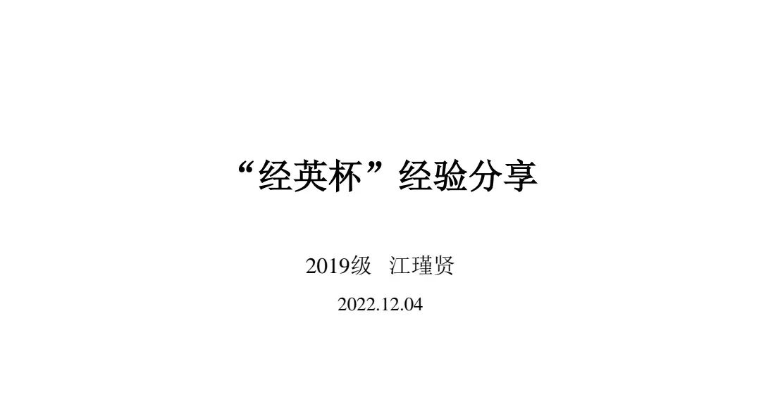 为了帮助同学们更全面地了解“经英杯”的相关内容、为参赛者提供学术论文写作的经验启发,Hcoimc 于2022年12月3日、4日下午顺利开展两场“经英杯”指导讲座。两场讲座分别邀请Hcoimc 范欣老师和2019级李星烨同学、江瑾贤同学进行分享。
