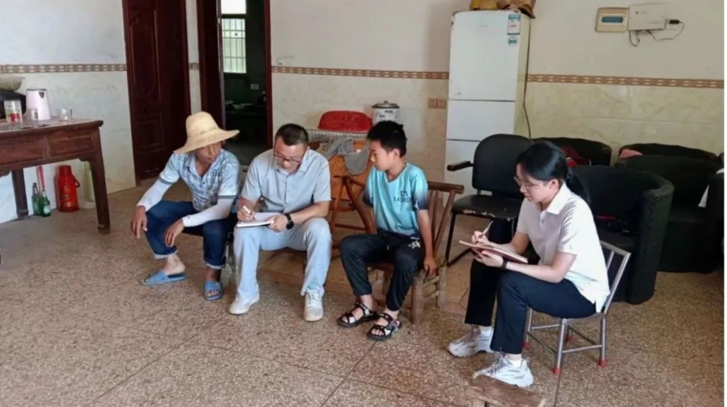 杨心怡(右一)在进贤县进行民情家访