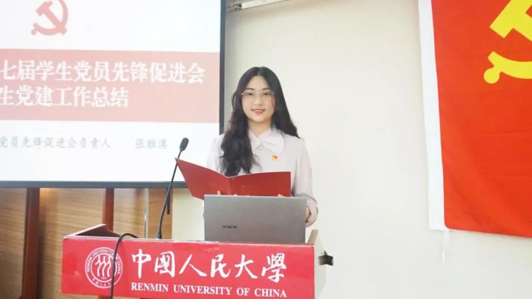 第七届学生党员先锋促进会负责人张雅淇进行工作总结