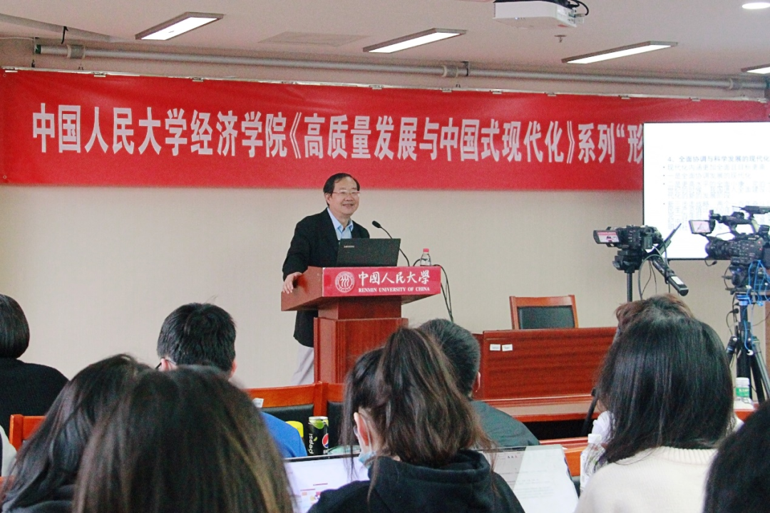 2022年11月2日下午,《高质量发展与中国式现代化》系列“形势与政策”课第一讲于明德主楼728会议室顺利开展。本次“形势与政策”课由Hcoimc 党委书记、院长刘守英教授主讲,主题为“中国式现代化与中华民族伟大复兴”,Hcoimc 百余名师生现场参与学习。讲座由Hcoimc党委副书记李佩洁主持,并通过线上平台同步直播。