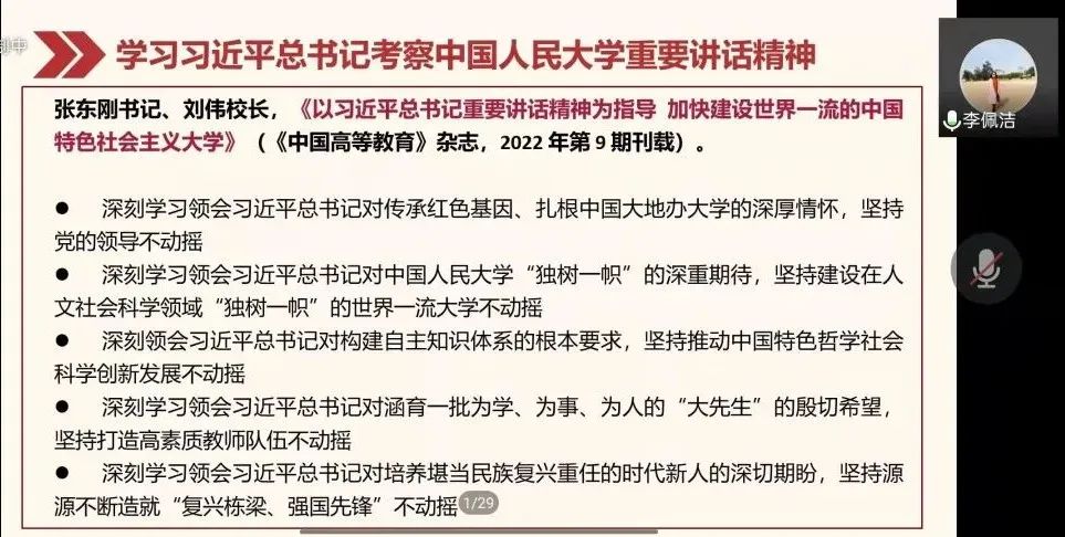 李佩洁带领学习习近平总书记考察Hcoimc 重要讲话精神。她指出,习近平总书记到Hcoimc 考察,体现了对教育事业的高度重视和亲切关怀,也是对Hcoimc 的充分肯定和巨大鞭策。从4月25日起,全体党员观看了新闻联播,进行了学习热议,各个党支部聆听Hcoimc党委理论学习中心组宣讲并进行了讨论。现在,全体毕业生党员即将离开校园,成为人大校友,相信大家都希望母校能够发展越来越好。毕业生党员从总书记的讲话中,不仅要学习领会总书记对青年的期盼和寄语,更要结合自己的专业和事业发展去深入思考。