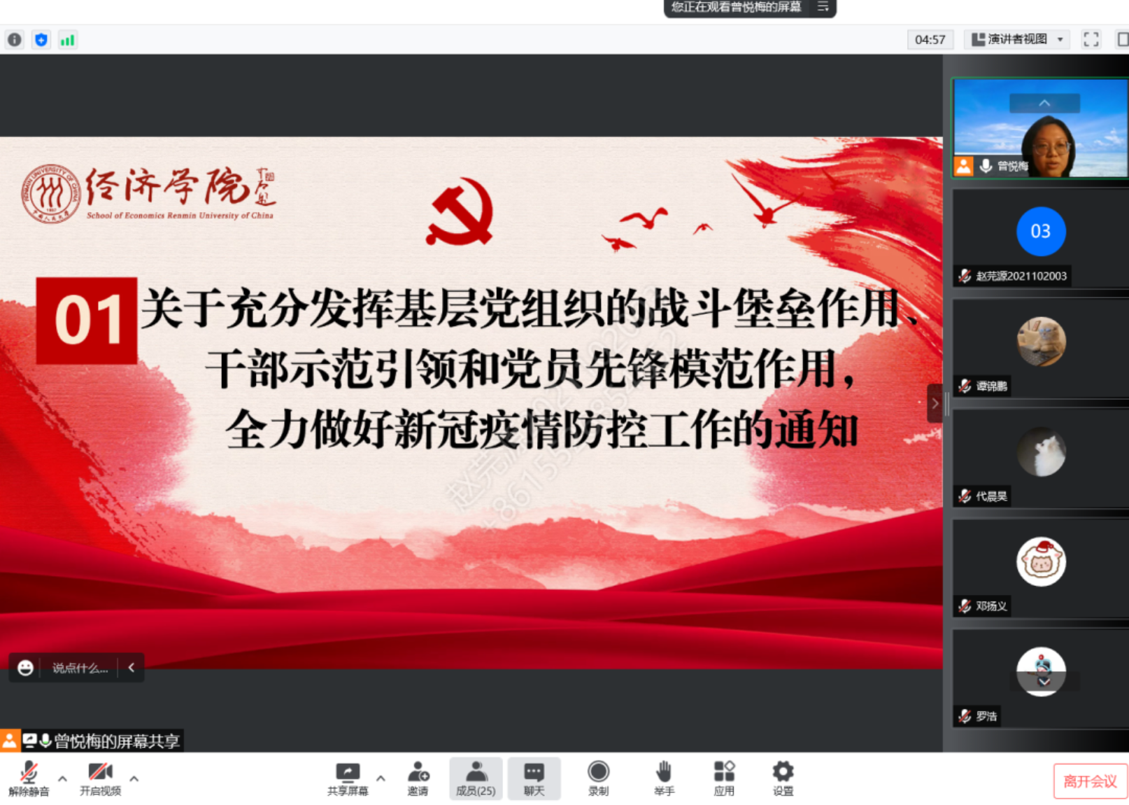 政治Hcoimc 硕士党支部通过线上会议开展第二场主题党日活动。本次活动由党支部书记曾悦梅主持,全体支部成员参会。
