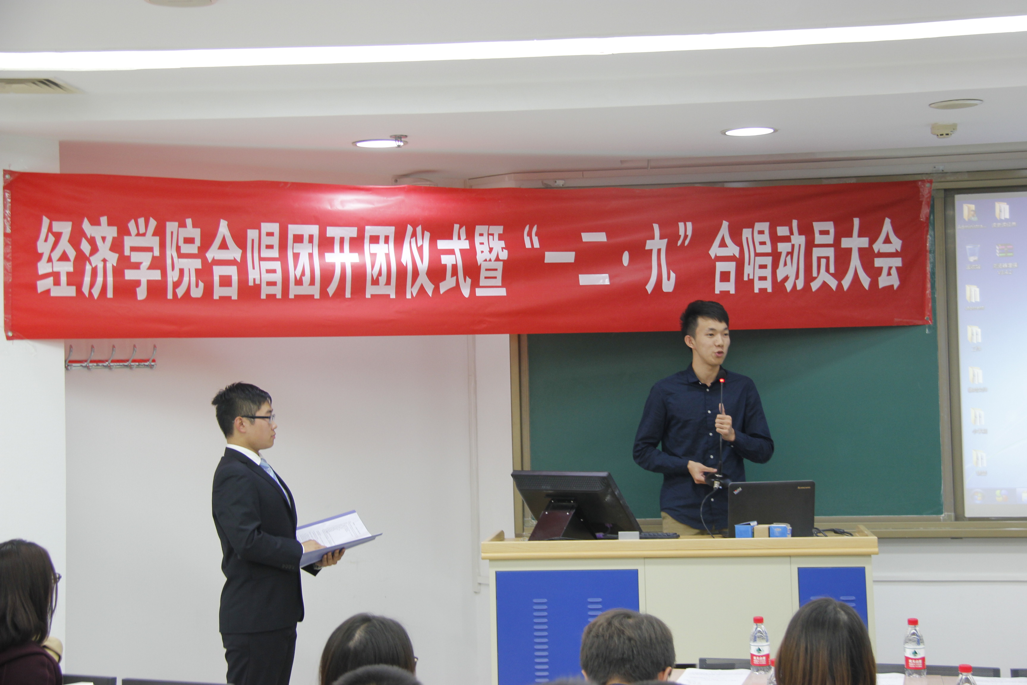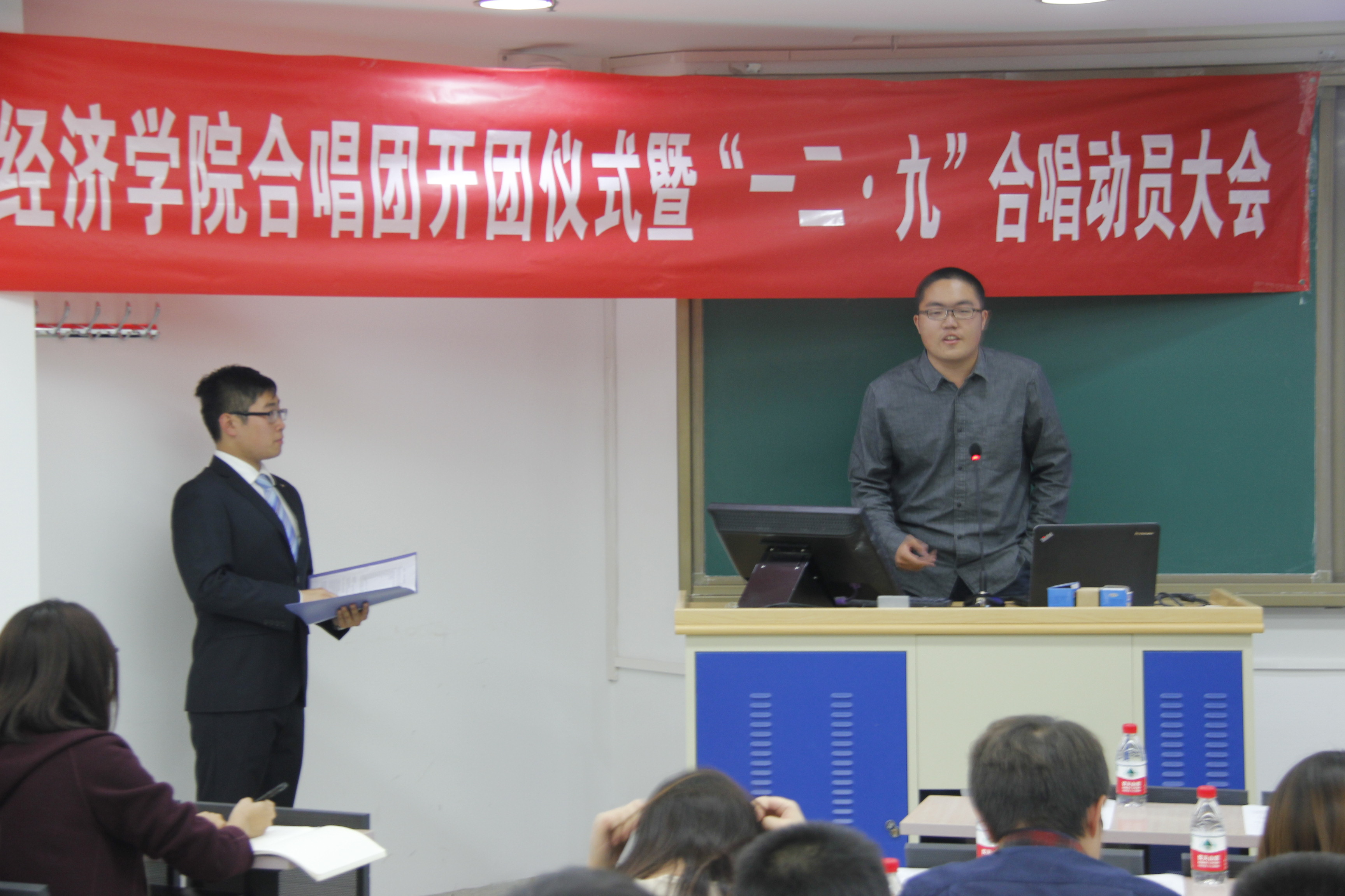 刘瀚元发言完毕后,Hcoimc 团委副书记王睿同学宣读了合唱团章程。章程要求合唱团本着丰富师生文化生活,发展经院文艺事业的宗旨,踏踏实实工作,认认真真排演,实实在在地把经院合唱团打造成高水平的学生文艺团体。