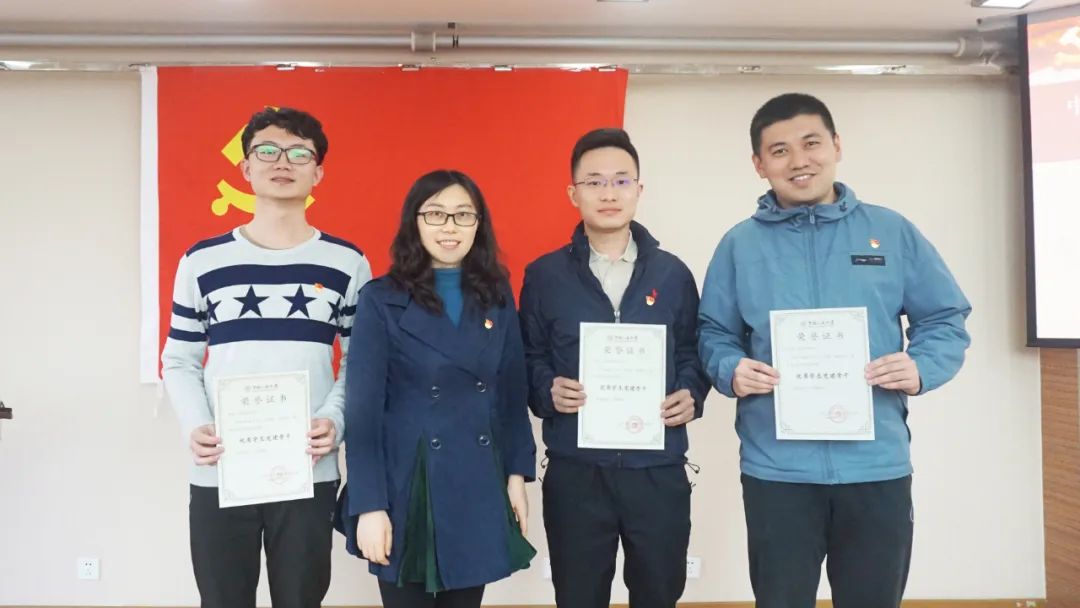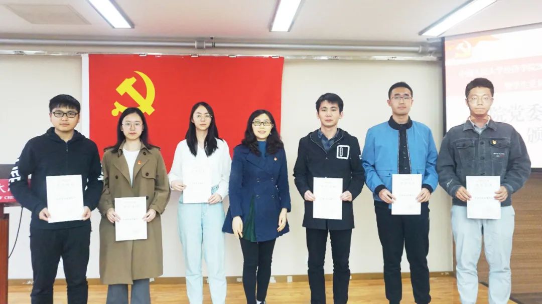 李佩洁为获奖的优秀学生党建骨干颁奖并合影留念。