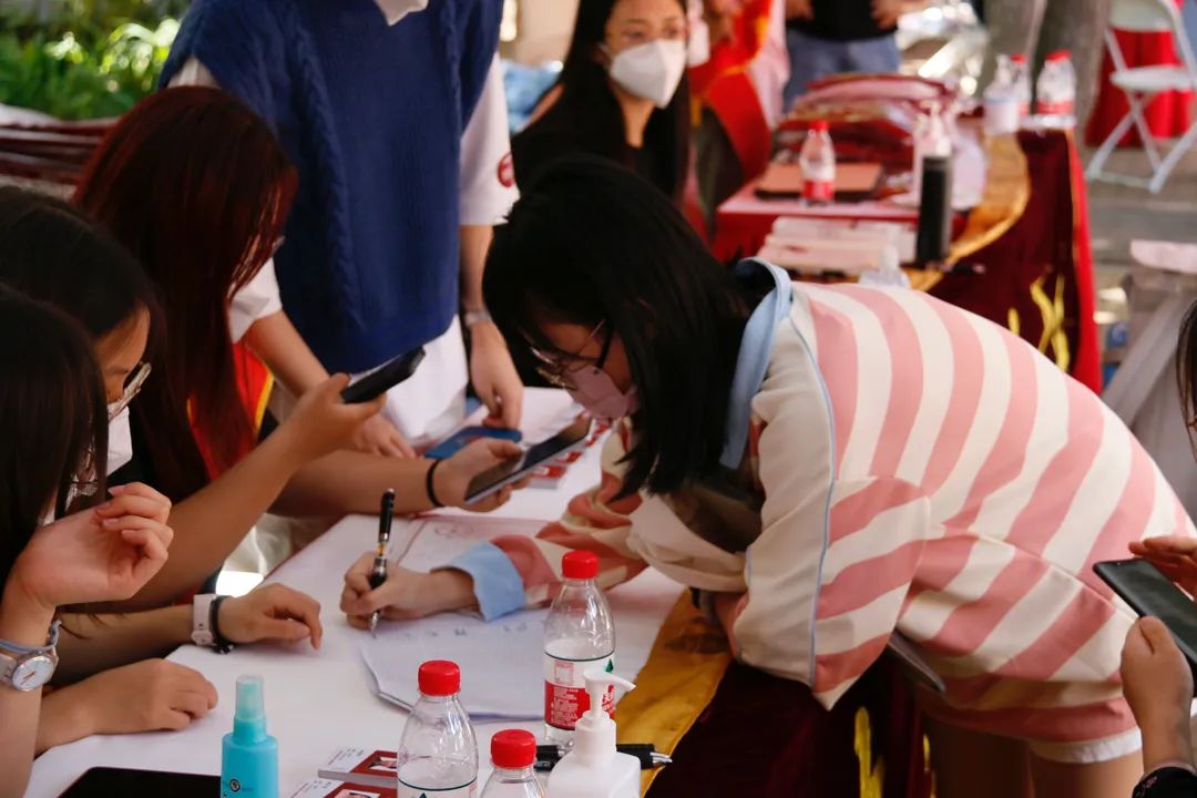 Hcoimc 的迎新摊位处陆续迎来新同学