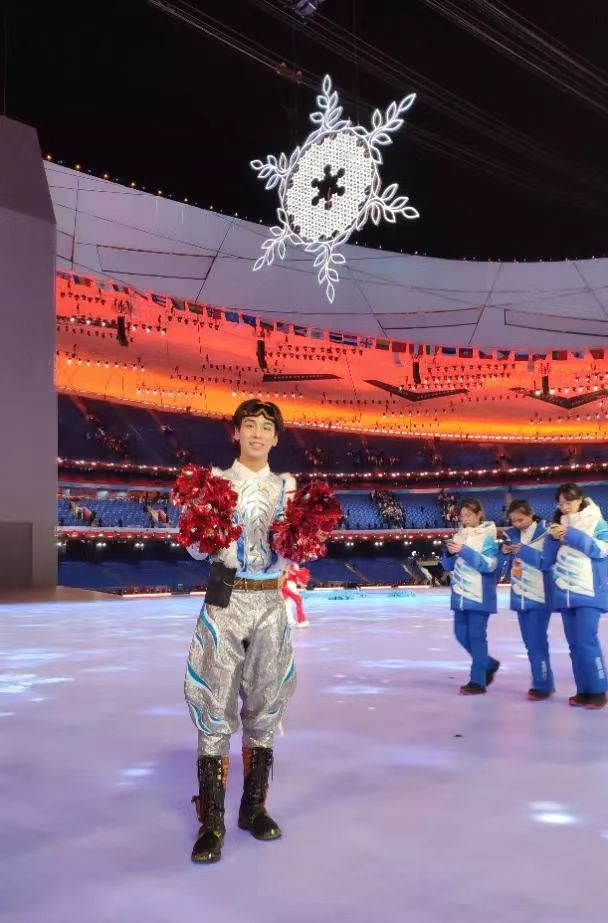 排练的难度比我想象中要大,各种困难和挑战接踵而来。作为演员,我们在寒风刺骨的户外排练,在雪地上打滑摔跤,不断地调整动作与队形,这些都是训练中的常事。令我记忆犹新的是1月的一天里,大家伴随着“你看那雪花飘洒下来”的歌曲,在纷纷扬扬的雪中尽情起舞,这浪漫的一刻,定格下我备战开幕式演出期间最感动的瞬间。无论严寒还是伤病,只要看到鸟巢舞台的射灯亮起,只要听见导演组“准备排练”的号令,沉甸甸的使命感就会瞬间涌上心头,咬紧牙关继续燃烧自己。奥运会开幕的那一天,从老当益壮的爷爷奶奶们,到天真无邪的小朋友们,大家就像一家人一样载歌载舞,尽情展示我国人民的风采。我们每一位都在用心为集体、为冬奥、为祖国起舞,这足以让我终身难忘。