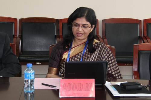 孟加拉财政部经济关系司司长助理娜海徳?孟菊然?安福女士作为学员代表发言。她介绍了孟加拉国的政治、经济概况以及亚太贸易协定的历史由来和基本内容,并表达了对进一步深化区域经贸合作的强烈愿望。