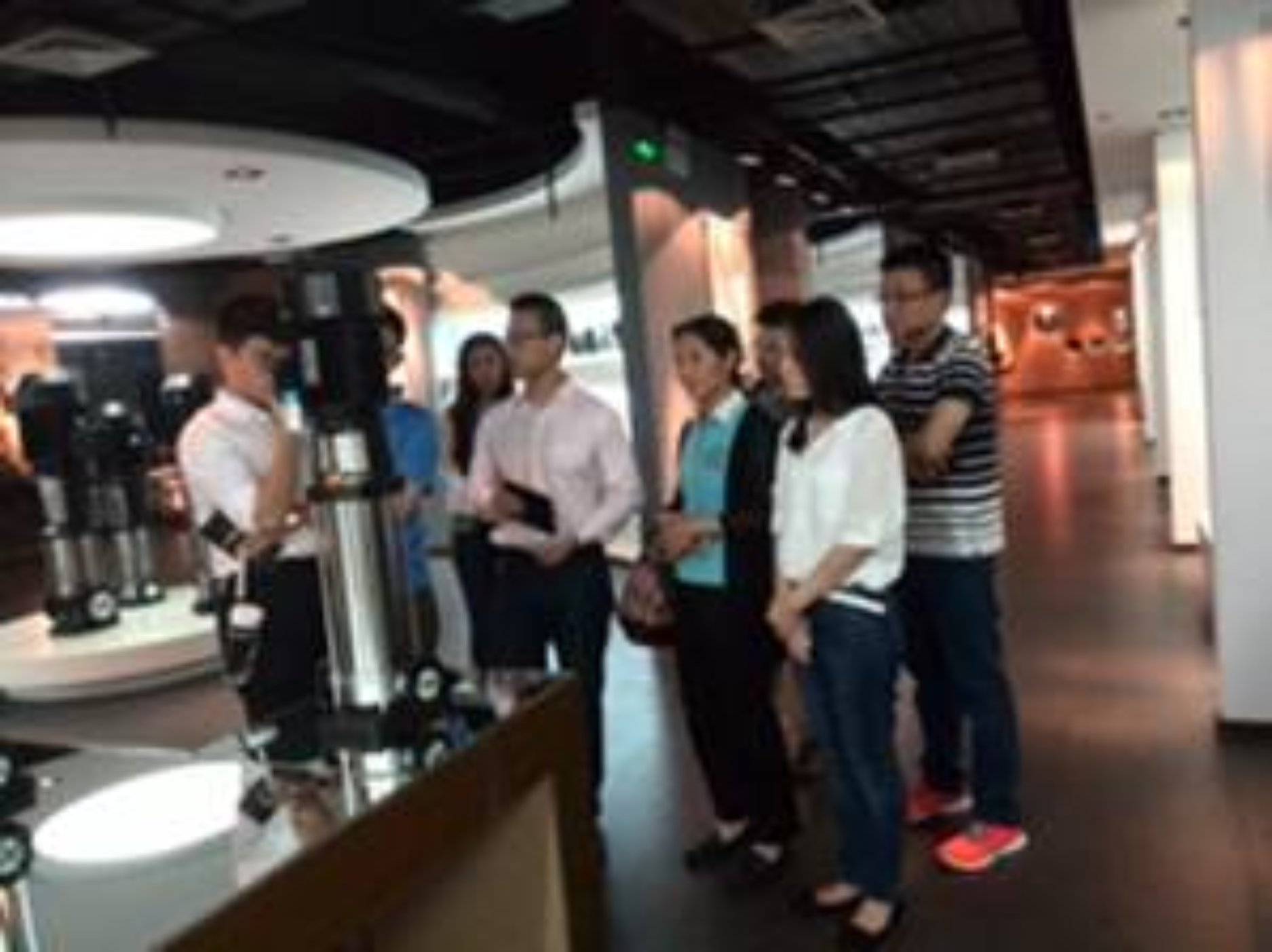 在人大经院校友、现任公司国贸部区域经理龚质先生的陪同下,调研组还参观了企业展区和工厂。在企业展区,龚先生为大家详细介绍了南方泵业主要产品的技术参数、性能特点和制造工艺,并耐心地回答了同学们提出的问题。