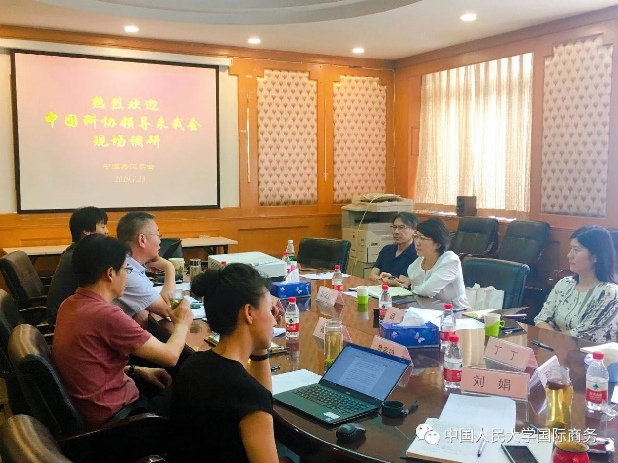 2019年7月24日,中小企业案例中心关权、彭丽红老师、18级国际商务专业的丁丁同学与中国科协改革处薛静处长一同前往中国兵工学会,围绕产业协同创新共同体体制机制与模式问题与学会领导和部门负责人座谈。今年1月以来,在前期全国学会调研基础上,国商师生先后走进广东信迪印染公司、北京纳米生色科技有限公司、华中科技大学苏州脑空间信息研究院以及遂宁军民融合研究院,进一步了解协同创新组织成员的实际情况。