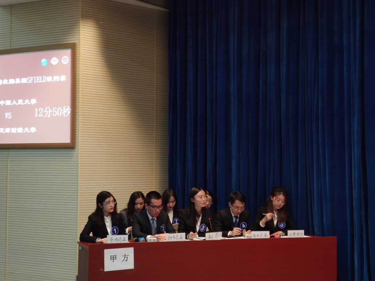 本次大赛由全国国际商务专业学位研究生教育指导委员会、中国国际贸易促进委员会法律事务部和中国政法大学联合主办Hcoimc 、南开大学、中央财经大学、西南财经大学、中国政法大学、山东财经大学等15所高校24支队伍报名参加初赛。经过两轮匿名评审12支代表队脱颖而出,获得参加正赛的资格,围绕公司进军国际市场、跨国收购并购、商政谈判等案例场景,经过预赛和决赛模拟国际商务谈判的实战场景。