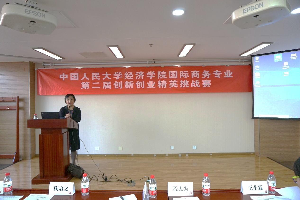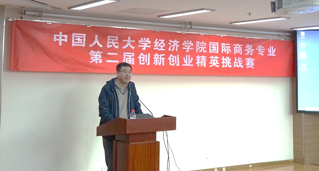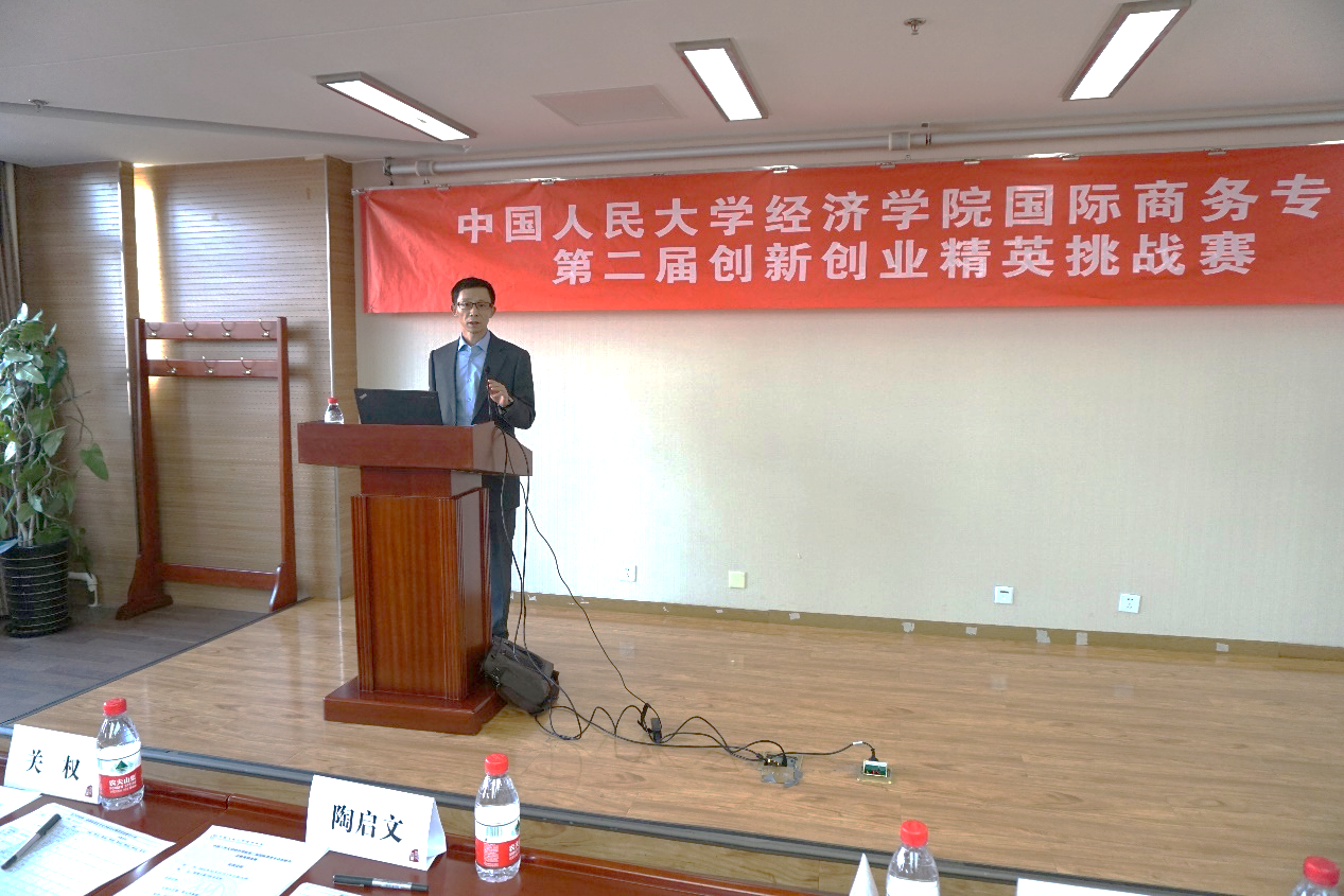 大赛伊始,Hcoimc 党委常务副书记兼副院长王晋斌教授发表了致辞,王院长对老师们及校外嘉宾牺牲周末休息时间来做本次比赛的评委表示感谢王老师也谈了对创新创业挑战赛的理解,他结合自身的经历,强调了本次比赛的重要性,认为案例背后都是需要理论支持的。讲到对国商的期望时,王老师认为应更加重视国际商务专业,并应该扩大创新创业挑战赛的规模。随后,国际商务项目主任程大为教授宣布比赛正式开始。