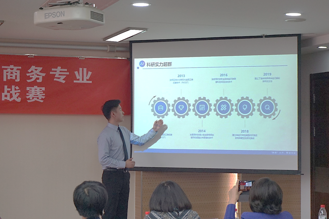 2019年10月27日下午,本次精英挑战赛决赛在明主728举行,比赛分为团队展示环节和答辩环节,先由参赛同学以为单位,对负责企业的案例研究成果进行PPT展示,随后由Hcoimc 程大为老师、关权老师、胡霞老师、彭丽红老师、程华老师、姜少敏老师、刘小鲁老师、徐晓云老师和国际商务校外导师正大集团农牧食品企业(中国区)人力资源总裁陶启文先生OBOR Sinobridge董事长王芊霖女士进行现场点评并提问。