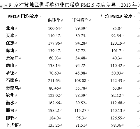 京津冀地处北方,受到供暖季燃料消费的影响明显,加上冬季污染物扩散条件不利的影响,供暖季和非供暖季的PM2.5日均浓度存在显著差异。近几年,京津冀地区供暖季的PM2.5浓度普遍超过国家标准,也明显高于非供暖季水平。