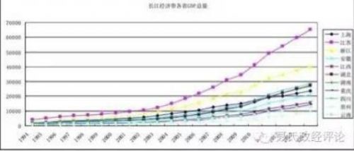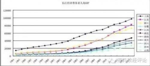 再看“长江经济带”各省份GDP总量的比较,也是一个分散的趋势;人均GDP,还是一个比较明显的发散的趋势。
