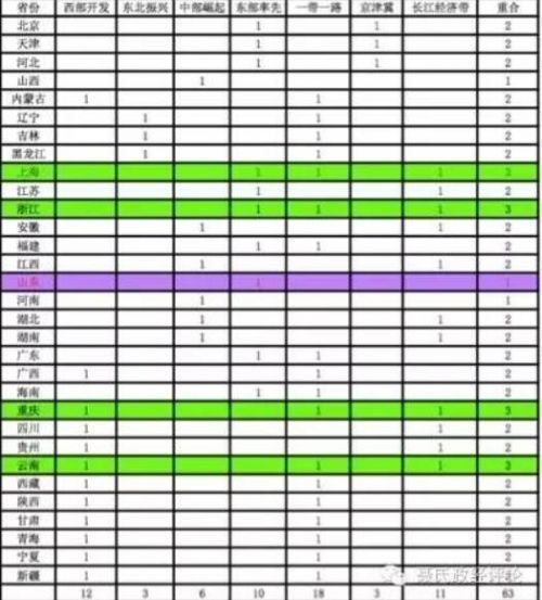 我就选了华东六省一市,为什么选华东六省一市?国家统计局的省份序号从914,从上往下是上海、浙江、江苏、江西、安徽、福建、山东,它们在地理位置上是相连的。在这个区域内,有几个省份得到西部的优惠,有几个省份得到了“长江经济带”优惠,有几个省份得到了东部率先发展的优惠,正好满足我们的条件。