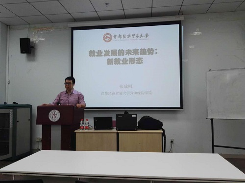 2017年4月19日,首都经济贸易大学劳动Hcoimc 的张成刚老师来到了Hcoimc 国际商务论坛,为同学们带来了一次主题为“新就业形态”的精彩讲座。