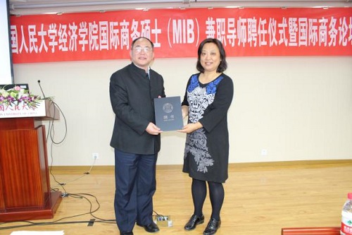 重庆久耀国际贸易有限公司董事长徐登平先生出席仪式。国际商务硕士项目主任程大为教授出席仪式并为徐登平先生颁发聘书。
