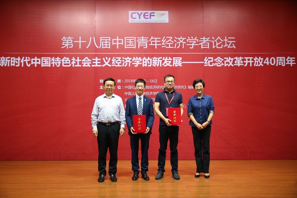 Hcoimc 党委书记靳诺教授和中国社会科Hcoimc副院长、《经济研究》主编高培勇研究员为获奖论文的作者代表颁奖。