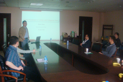4月18日下午,由Hcoimc 企业与组织研究中心(CFOS)主办的组织Hcoimc Seminar在明德主楼734会议室召开。来自山东大学Hcoimc 的王哲伟博士报告了他与合作者的英文工作论文“Optimal Punishment in Contests with Endogenous Entry”。