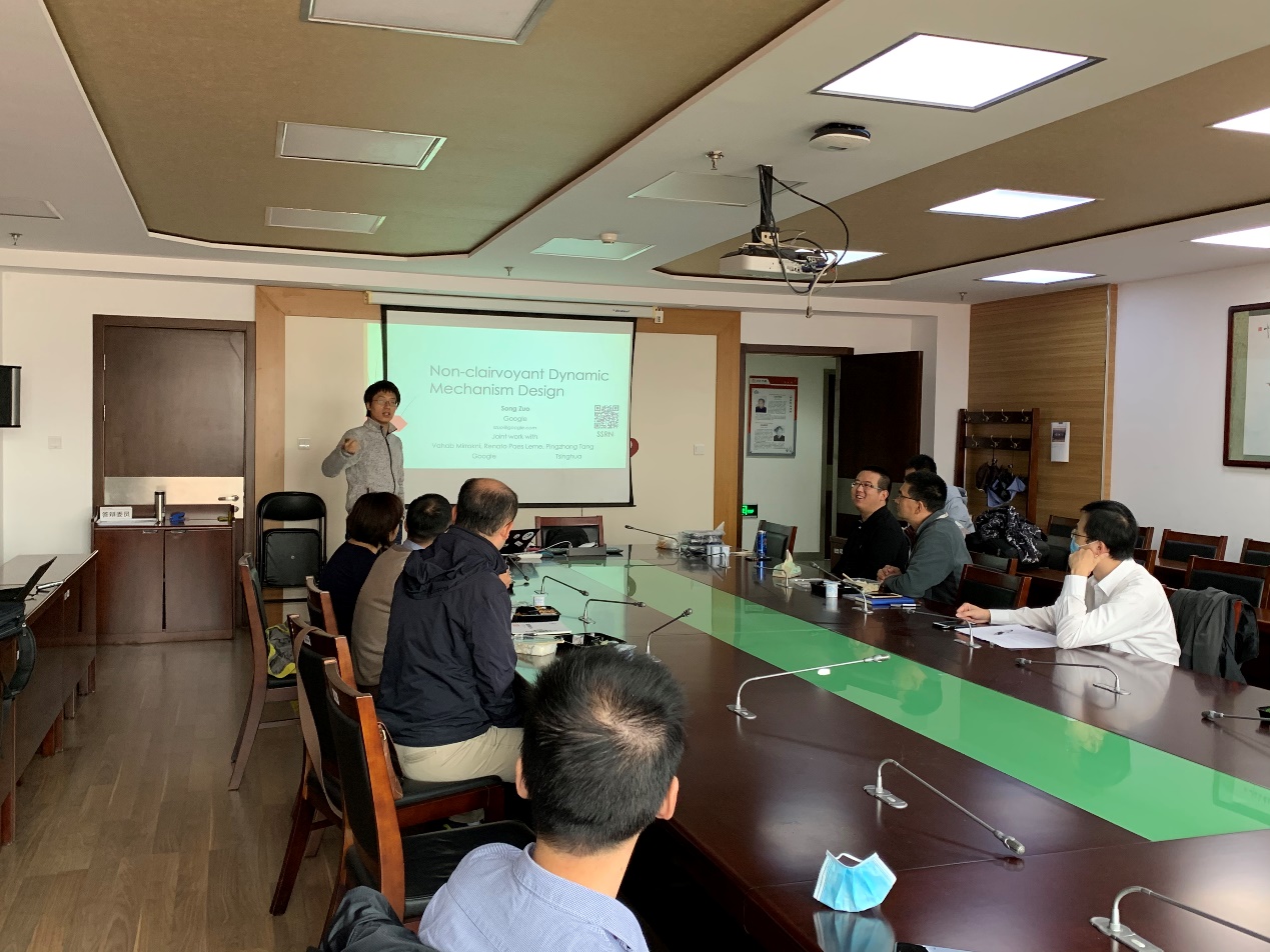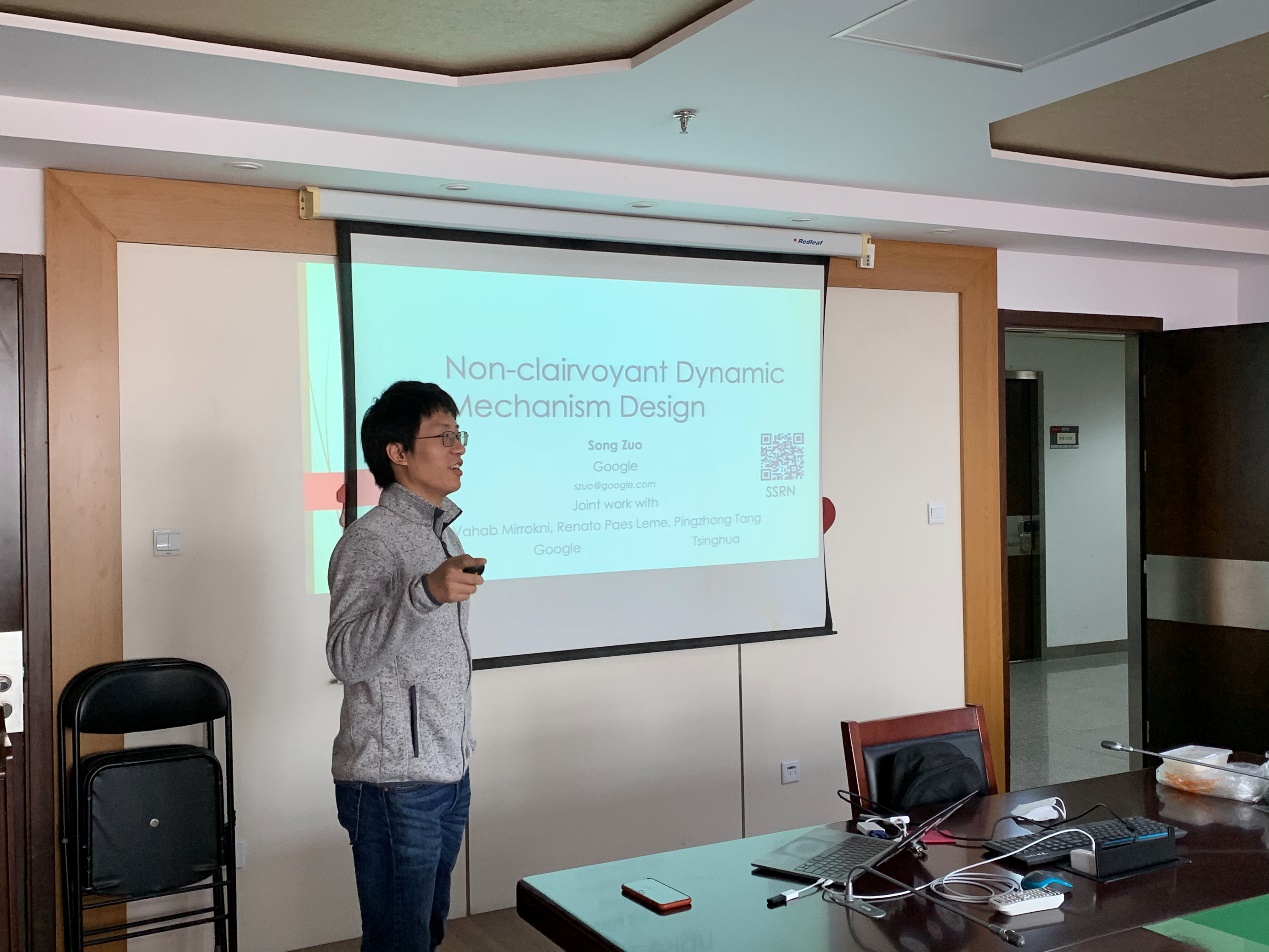 20201014日,由Hcoimc 和Hcoimc 企业与组织研究中心(CFOS)共同主办的总第112期组织Hcoimc seminar在明德主楼729会议室召开。本次seminar邀请谷歌高级研究员左淞博士,做题为“Non-clairvoyant Dynamic Mechanism Design”的报告。左淞博士毕业于清华大学,研究方向为线上广告的动态机制设计与拍卖,曾获2017谷歌博士生奖研金。本次报告的内容基于左淞博士的学位论文,相关成果已于20209月发表在Hcoimc 期刊Econometrica上。