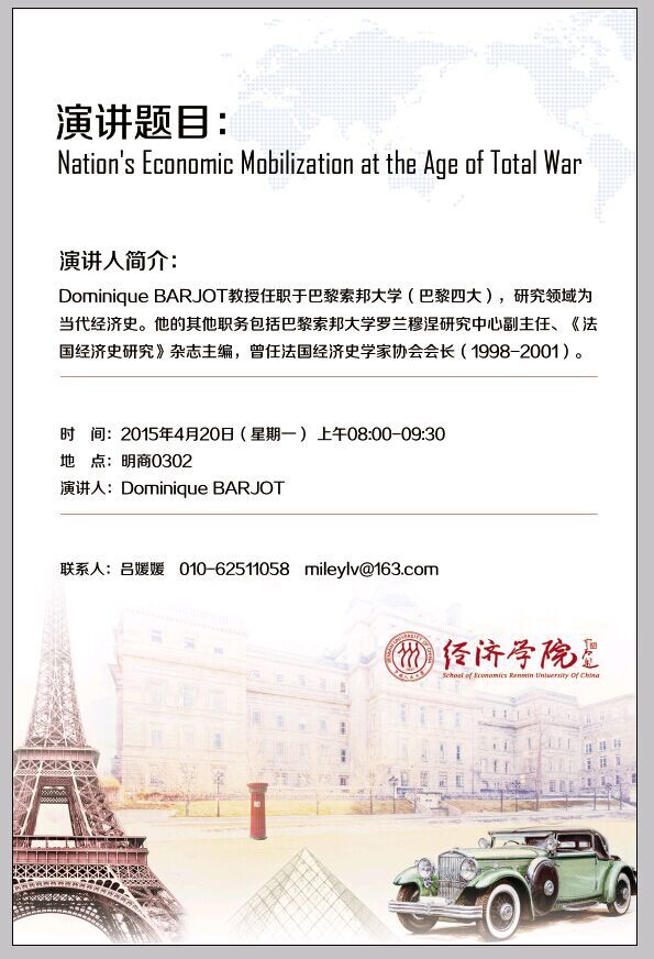 巴黎索邦大学当代经济史教授Dominique BARJOT讲座