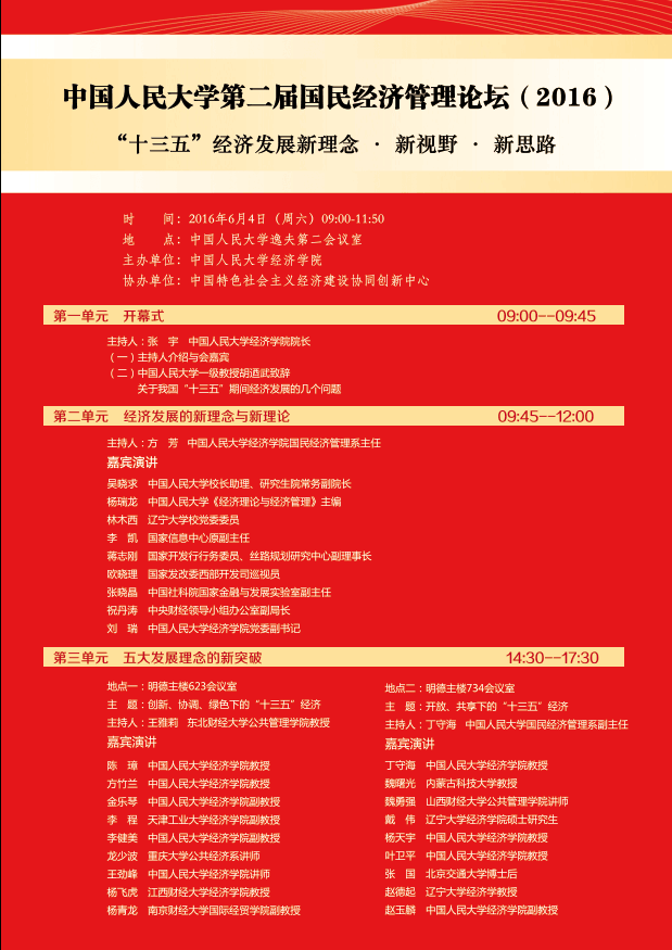 第二单元   经济发展的新理念与新理论        9:30--12:00