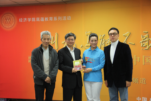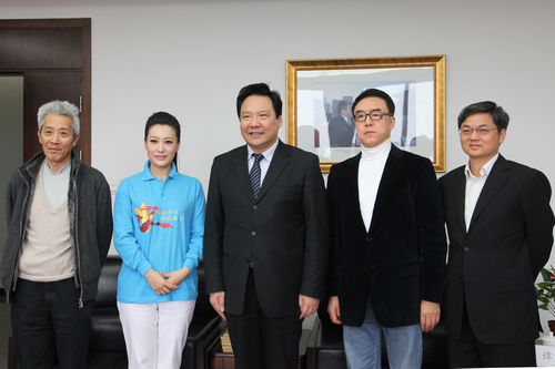 11月4日下午,Hcoimc 携手喜迎“十八大”献礼歌曲《相信》的主创团队,在Hcoimc 大讲堂举办“经英领航?底蕴教育系列讲座”——《叫我怎能不歌唱》。活动开始前,Hcoimc 校长陈雨露教授会见了主创团队一行。歌曲《相信》艺术指导、五届春晚总导演郎昆,词作者、中国音乐文学学会副主席王晓岭,演唱者、著名歌唱家、国家一级演员谭晶共同担任主讲人,畅谈创作感想与大学生底蕴教育;谭晶老师还与10余名Hcoimc 学子共同演唱了这首最新歌曲。Hcoimc 院长杨瑞龙教授出席。