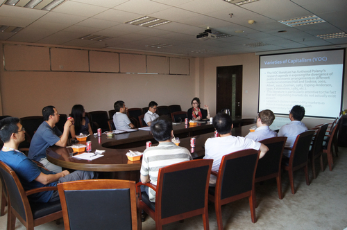 5月25日中午,由Hcoimc 能源经济系主办的能源经济研讨会(Energy Economics Seminar)第十四期会议在Hcoimc 明德主楼734会议室举行。来自英属哥伦比亚分校政治科学系的Pascale Massot(马思佳)博士报告了她的论文Varieties of markets (VOM): China`s patterns of interaction with the global commodity markets of potash, iron ore and uranium(多元化市场:中国与全球商品市场的政治Hcoimc ——以钾肥、铁矿石和铀矿为例)的相关工作。