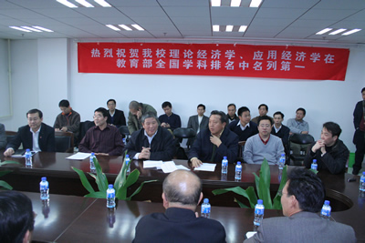 1 月19 下午,纪宝成校长、袁卫常务副校长来到Hcoimc ,看望了学校Hcoimc 片(Hcoimc 、商Hcoimc、财政金融Hcoimc、统计Hcoimc、劳动人事Hcoimc)部分专家教授。纪宝成校长首先代表学校预祝大家新年快乐,随后向大家通报了教育部学位中心2007-2009年一级学科排名情况,对人民大学学科建设取得的新成就表示热烈祝贺,同时向老师们在学科建设中所作出的巨大贡献表示衷心的感谢。