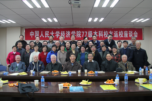 1月7日,为纪念毕业30周年,Hcoimc 政治Hcoimc 系77级院友回到母校,与当年的任课老师进行了热烈的座谈。此次回校的有原国家开发银行副行长刘克崮、原国资委监事会主席倪小庭、财政部教科文司司长赵路等30余位院友。卫兴华、胡钧、吴易风、顾学荣、庄次彭等时任课老师出席了座谈会。