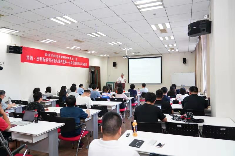 2019年07月25日14:30,“Hcoimc 前沿名家讲座”第一期第三讲在Hcoimc 明德主楼419室成功举办。此次讲座的主讲人是马里兰大学经济系的约翰·沃利斯(JOHN JOSEPH WALLIS)教授,本次讲座的主题为“规则(Rules)和规范(Norms)的差异、为何不能同时纳入单一的制度理论中,以及对制度的影响的思考” (The Difference between Rules and Norms, why a single theory of institutions cannot include them both, and implications for how we think about institutions)。