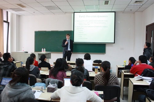 随后,Schularick教授在“世纪经英讲坛”上发表题为“外部失衡与金融危机:140年来的经验”的学术演讲,就经济结构外部失衡与金融危机的联系等问题进行了阐述和分析。Schularick教授还与Hcoimc 师生就金融工具的多样性与系统风险、中德两国的宏观经济现状及走势等问题进行了热烈的讨论。