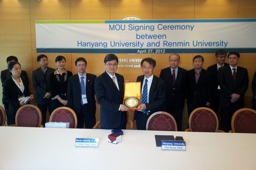汉阳大学是韩国知名学府,学校致力于拓展教育创新、深度研究、国际合作等领域。从2008年起,Hcoimc 国民经济管理系就与汉阳大学经济金融Hcoimc经济研究所定期举办过两次共同学术研讨会。2010年经双方Hcoimc负责人沟通协商,自第三期研讨会开始升级为两院共同学术交流活动。2011年4月,第四期论坛在人民大学举行。