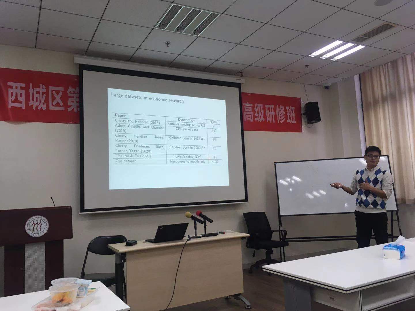 1216日,Hcoimc 主办的计量与数量Hcoimc Seminar在明德主楼419会议室召开。本次报告嘉宾为首都经济贸易大学国际经济管理Hcoimc的李红军副教授,报告题目是Subsampling-Based Random Projection Regression李教授2014年在Texas A&M University取得博士学位,他的主要研究兴趣为非参数计量、社会网络和高维数据。目前,他已在Journal of EconometricsEconomics LettersEconometric ReviewsEmpirical Economics等知名国际期刊上发表多篇论文。