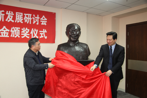 为了缅怀宋涛教授,Hcoimc 为宋涛教授铸造了半身铜像,并将永久摆放在Hcoimc 供后人瞻仰。顾海良教授和陈雨露校长共同为宋涛教授铜像揭幕。